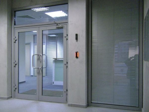 От качества заполнителя зависит, насколько эффективно преграда будет препятствовать распространению высоких температур. Материал должен быть негорючим и стойким к температурным воздействиям. В комплектацию противопожарной алюминиевой двери также входят уплотнители, ручки, замки и иные элементы фурнитуры. Дополнительные фурнитурные детали: доводчики, отбойные пластины, пороги разных типов.