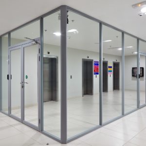 Противопожарные перегородки EI 90 могут изготавливаться как в полностью остекленном варианте, так и в частично остекленном исполнении. Основное предназначение таких конструкций — это разделение общего помещения на несколько отдельных рабочих зон. При этом преследуется несколько целей: